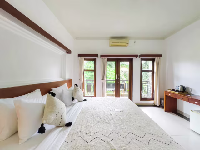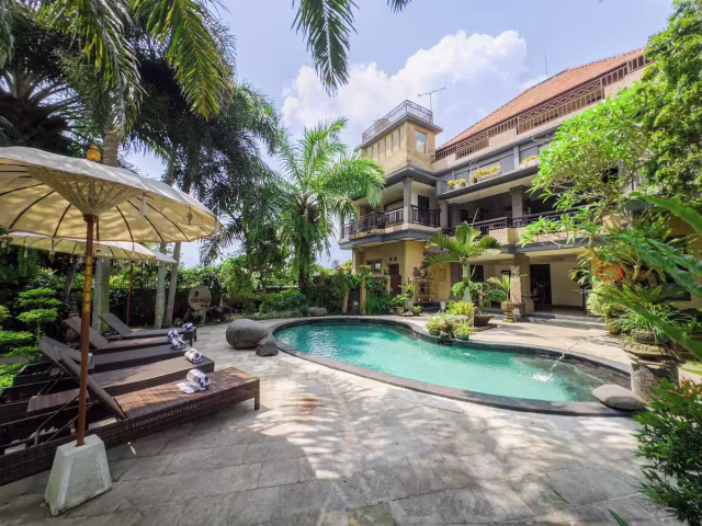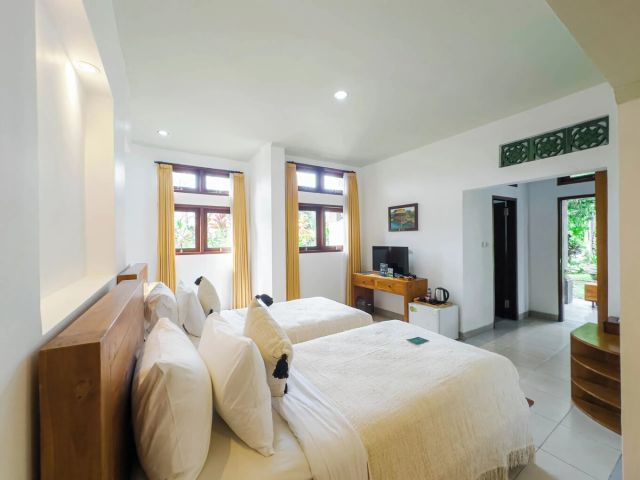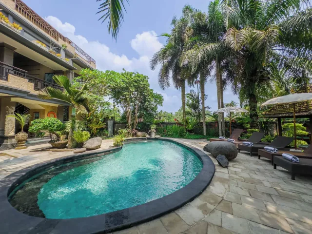 HOTEL --> situato appena fuori il centro dell'iconica località di Ubud, nel centro dell'isola, circondato da risaie e con un'atmosfera rilassata. Dispone di piscina e guardino, avrete una doppia con bagno privato, aria condizionata e colazione inclusa.