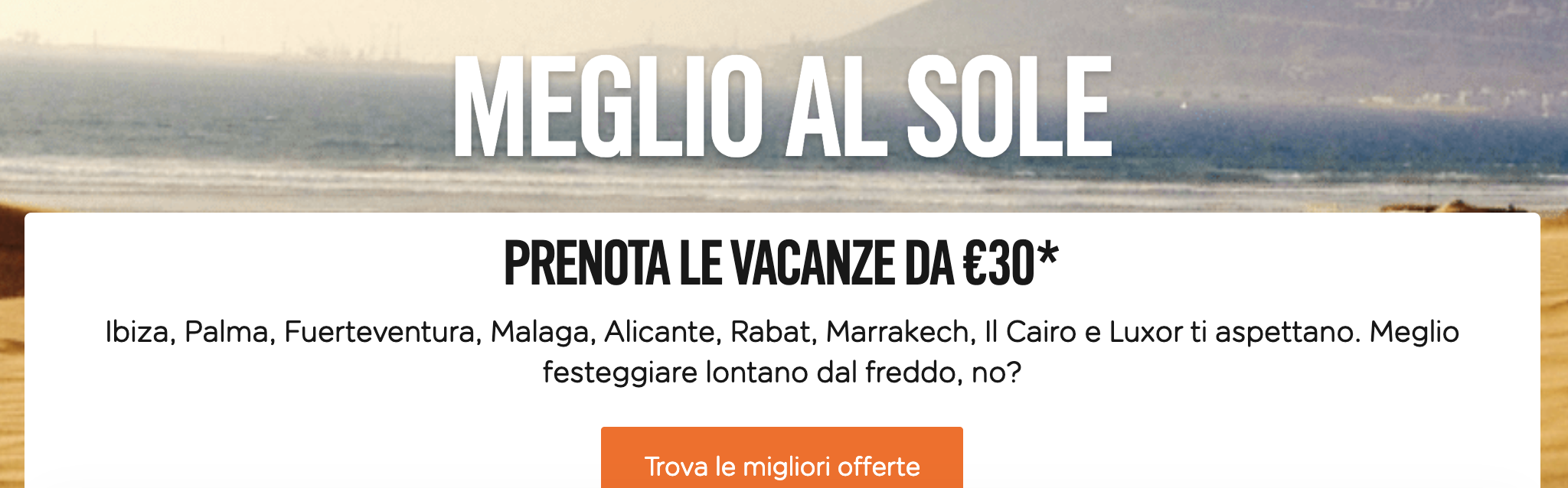 Ci sono voli a prezzi ridottissimi per le destinazioni al sole come ad esempio l'Egitto, il Marocco o le Canarie!